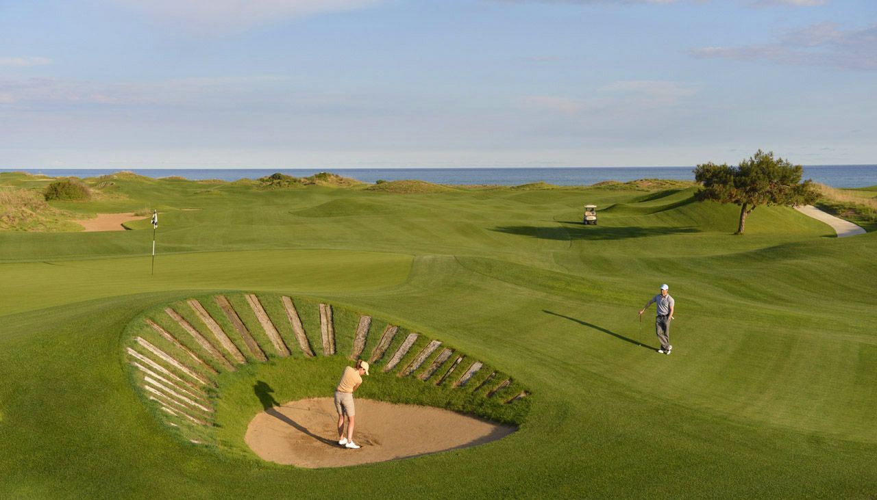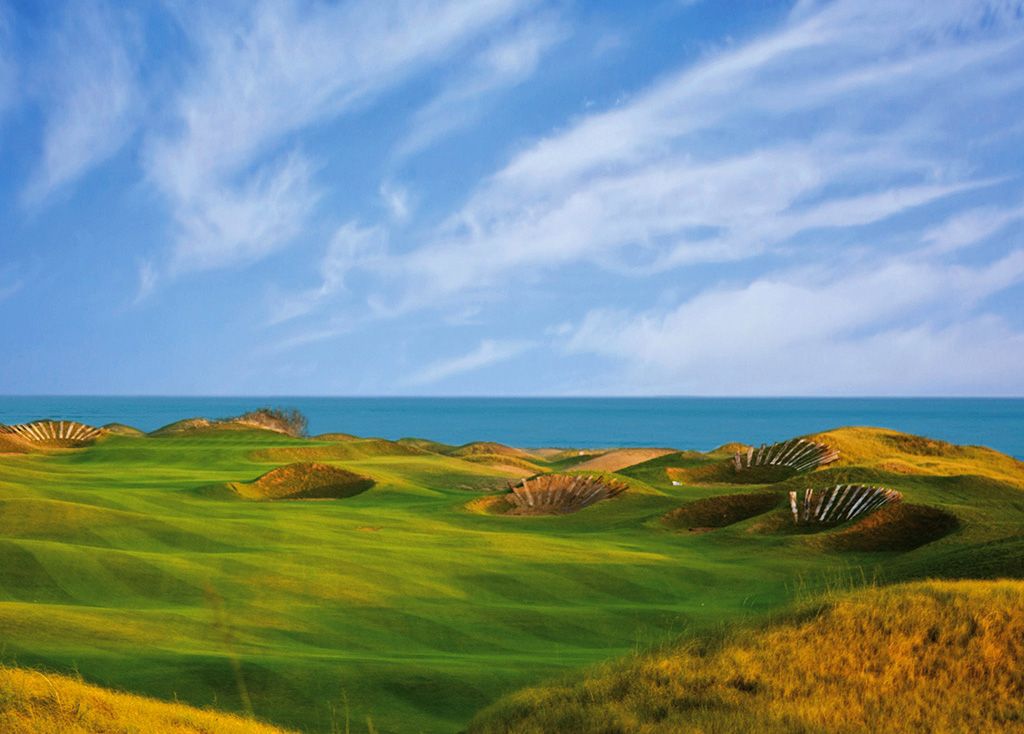 | Bunkers: | 54 Dye style pot bunkers, plus waste bunkers and beach |