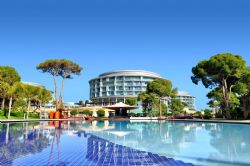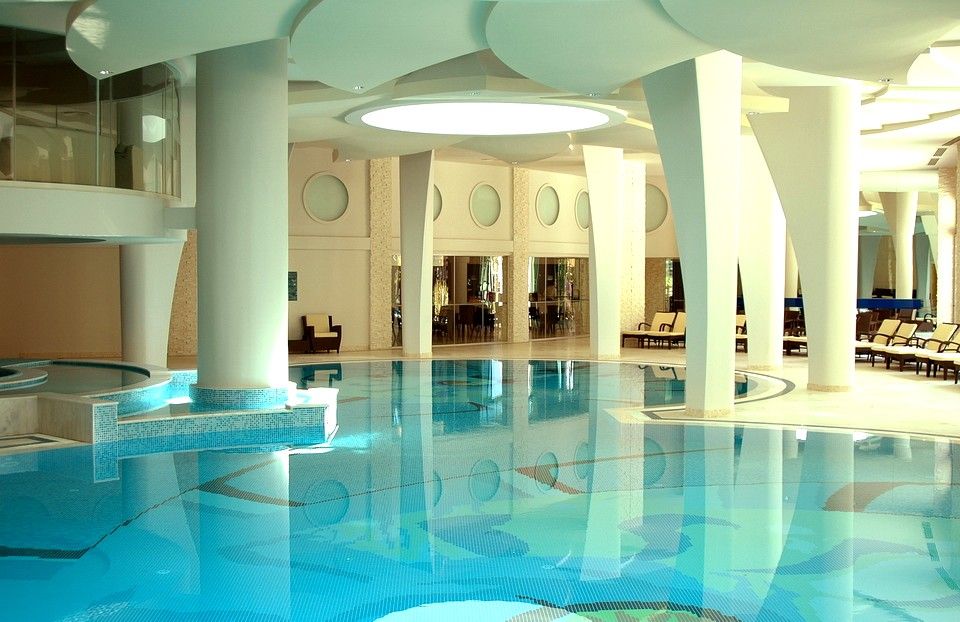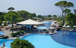 There are 5 international size tennis courts and a heated swimming pool at the premises. In total there are 3 swimming pools, an Aqua park and 2 children’s pools. The facilities and activities include; aerobic and step, fitness center, table tennis, volleyball, beach volleyball, basketball, Thai-chi, yoga, Pilates, dance school, aqua-tie, water gymnastics, boccia, bowling, billiards, shuffle board, video games. Also, there is an Aqua park with 4 slides, wind surfing, banana boat, Para-sailing, jet-ski and other water sports are available. The Callos Spa center offers a number of health and care services including Turkish bath, sauna steam bath, snow fountain, adventure fountain, shower, Jacuzzi, massage, beauty centers and hair dressers.