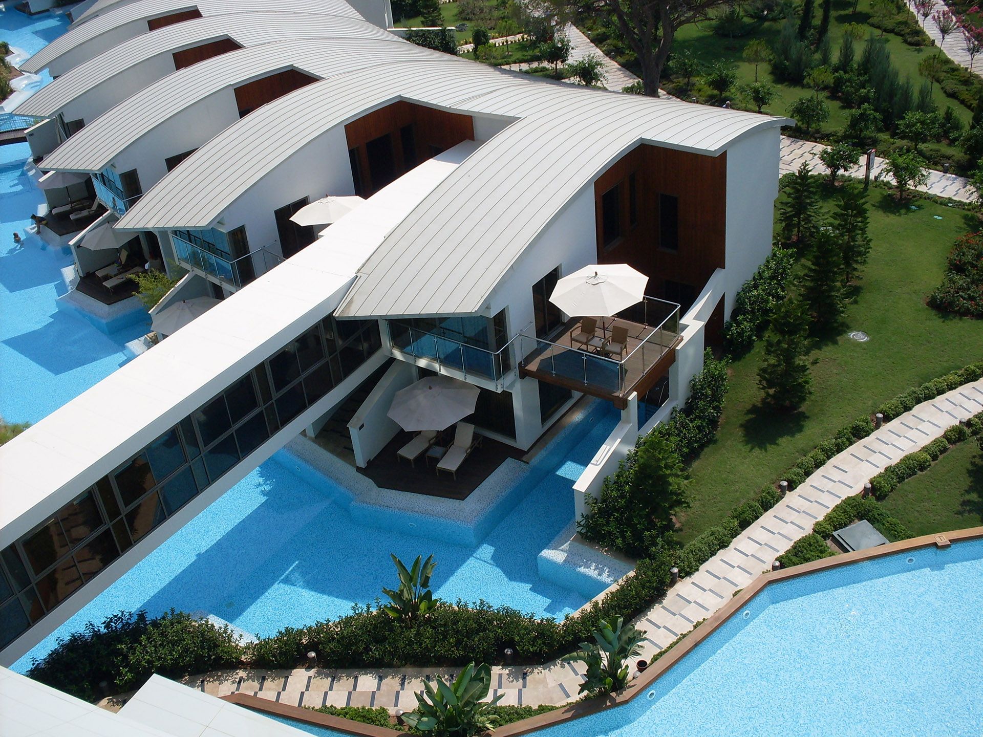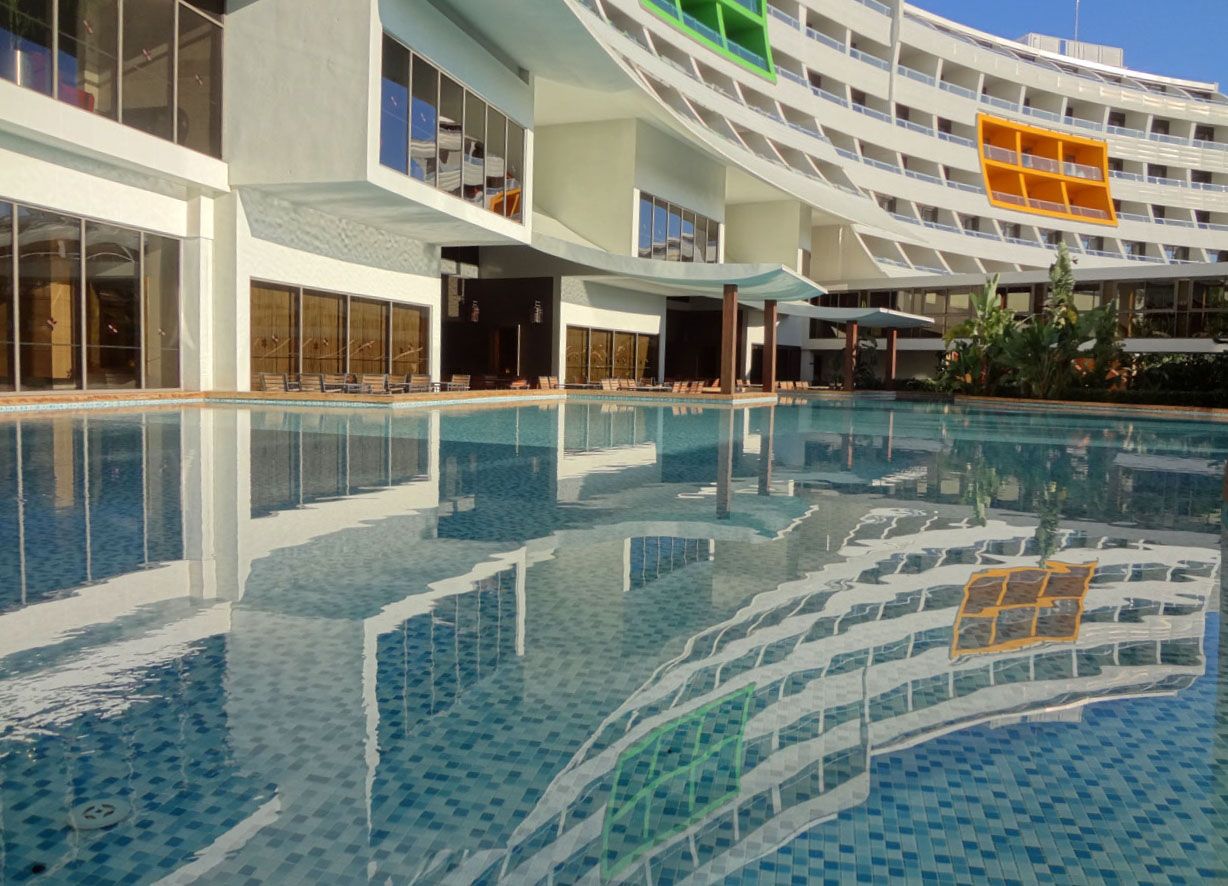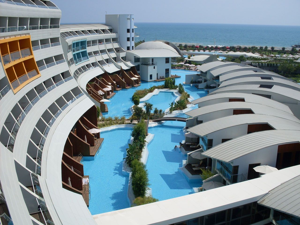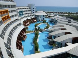 There are 10 tennis courts and 8 swimming pools including one heated indoor pool, Aqua Park Pool, Children Pool and 3 Jacuzzi. The facilities and activities include: motor less water sports, fitness center, Turkish bath, Sauna, aerobic, archery, badminton, table tennis, beach volleyball, basketball, bowling, billiards, video games. The Spa center offers a number of health and care services including Turkish bath, sauna, Russian Sauna, steam bath, aromatherapy and chromo therapy showers, Jacuzzi, massage and beauty center.