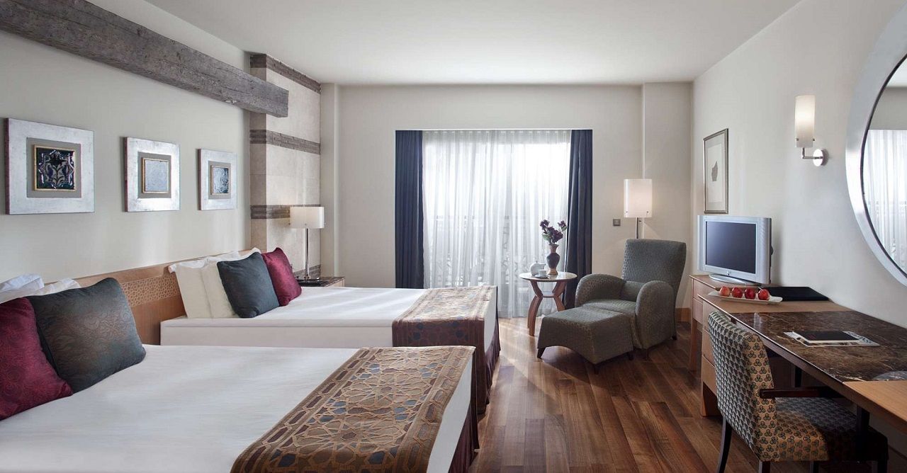 Accommodation; Luxury hotel rooms supplied with modern technology and tasteful furnishings inspired by Seljuk architecture, for a luxurious escape in the heart of the Mediterranean. Superior Rooms are 38 m² and they include; coffee / tea facilities, laptop-size safe, balcony, flat-screen tv, working desk, king or twin beds